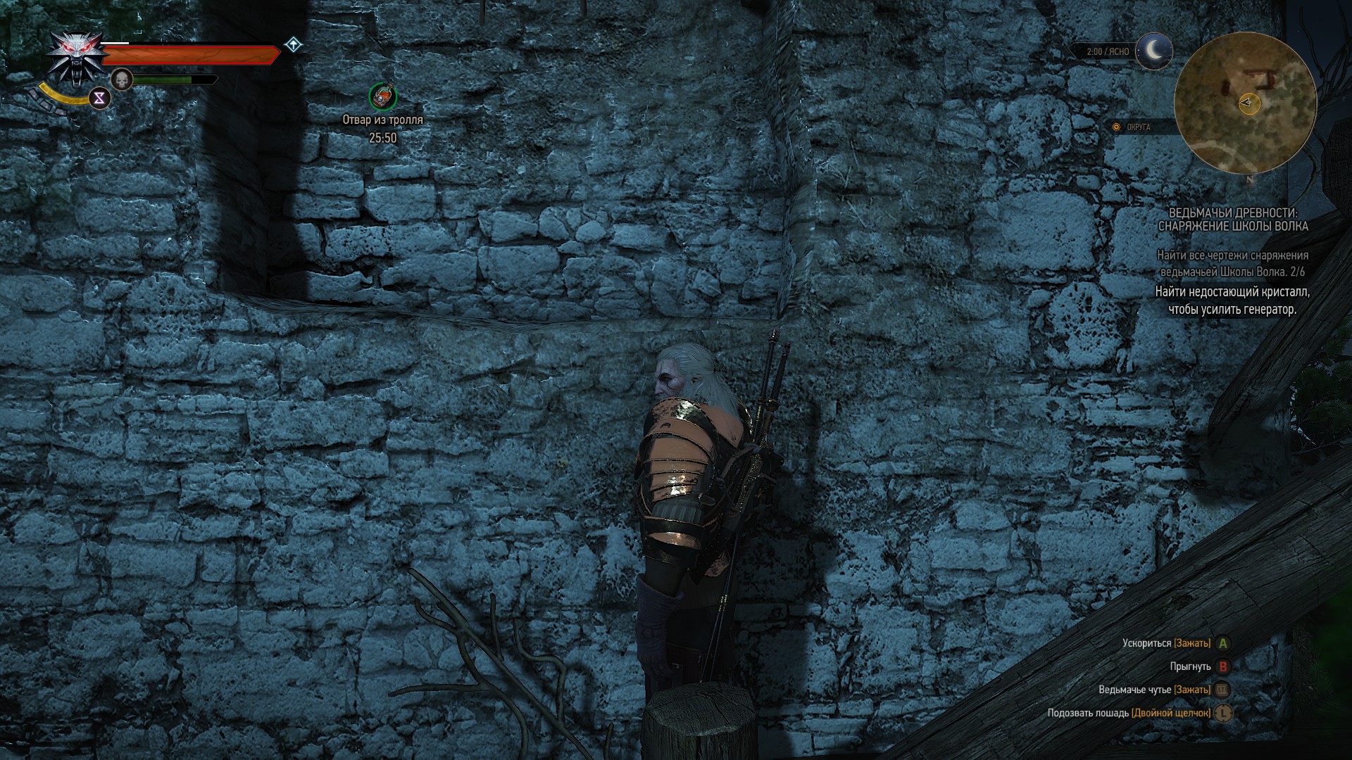 - Чертеж: штаны Школы Волка (необходимый уровень — 14): среди останков Иеронимуса в пещере под Сигнальной башней на вершине скалы напротив главных ворот крепости Каэр Морхен.